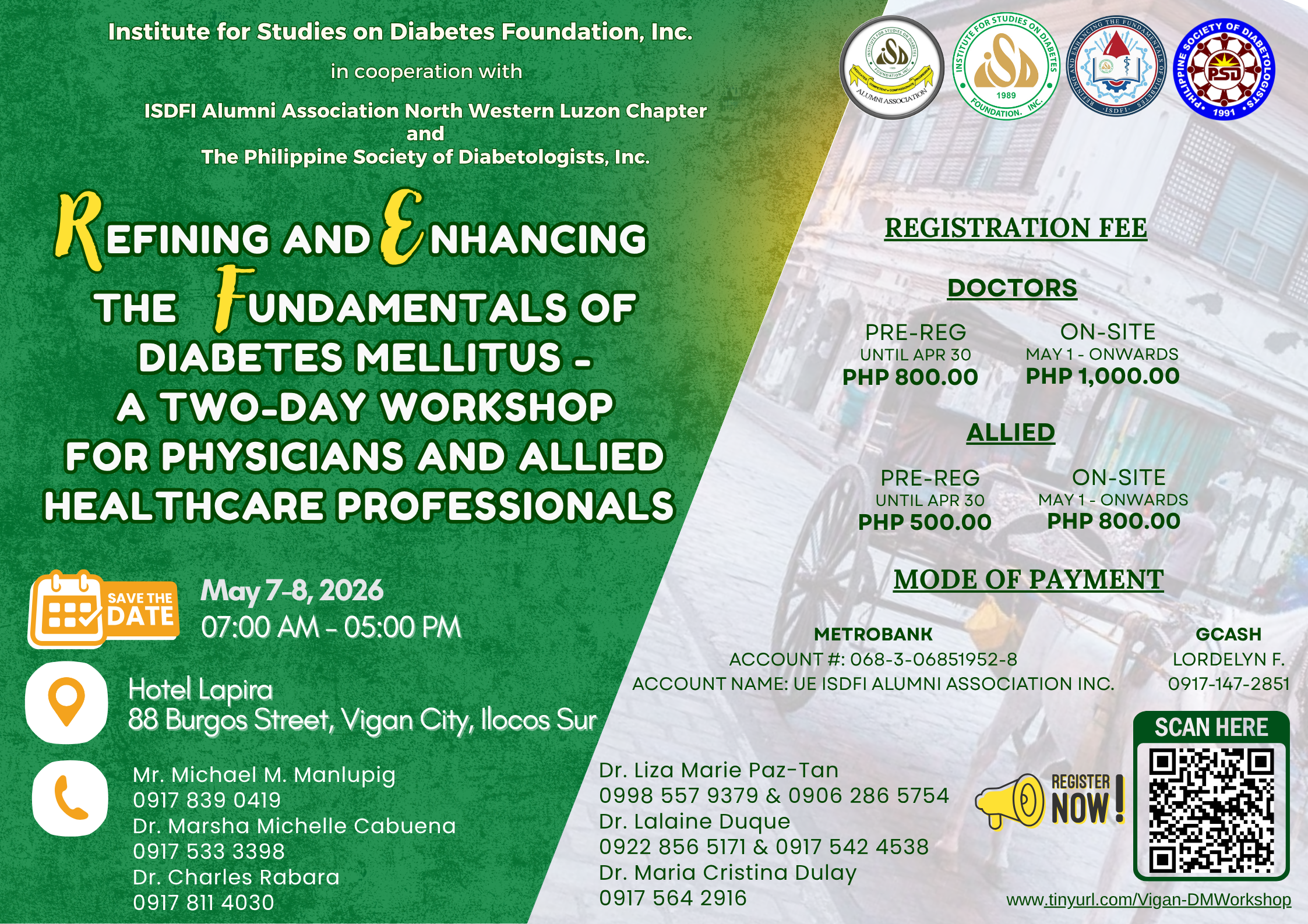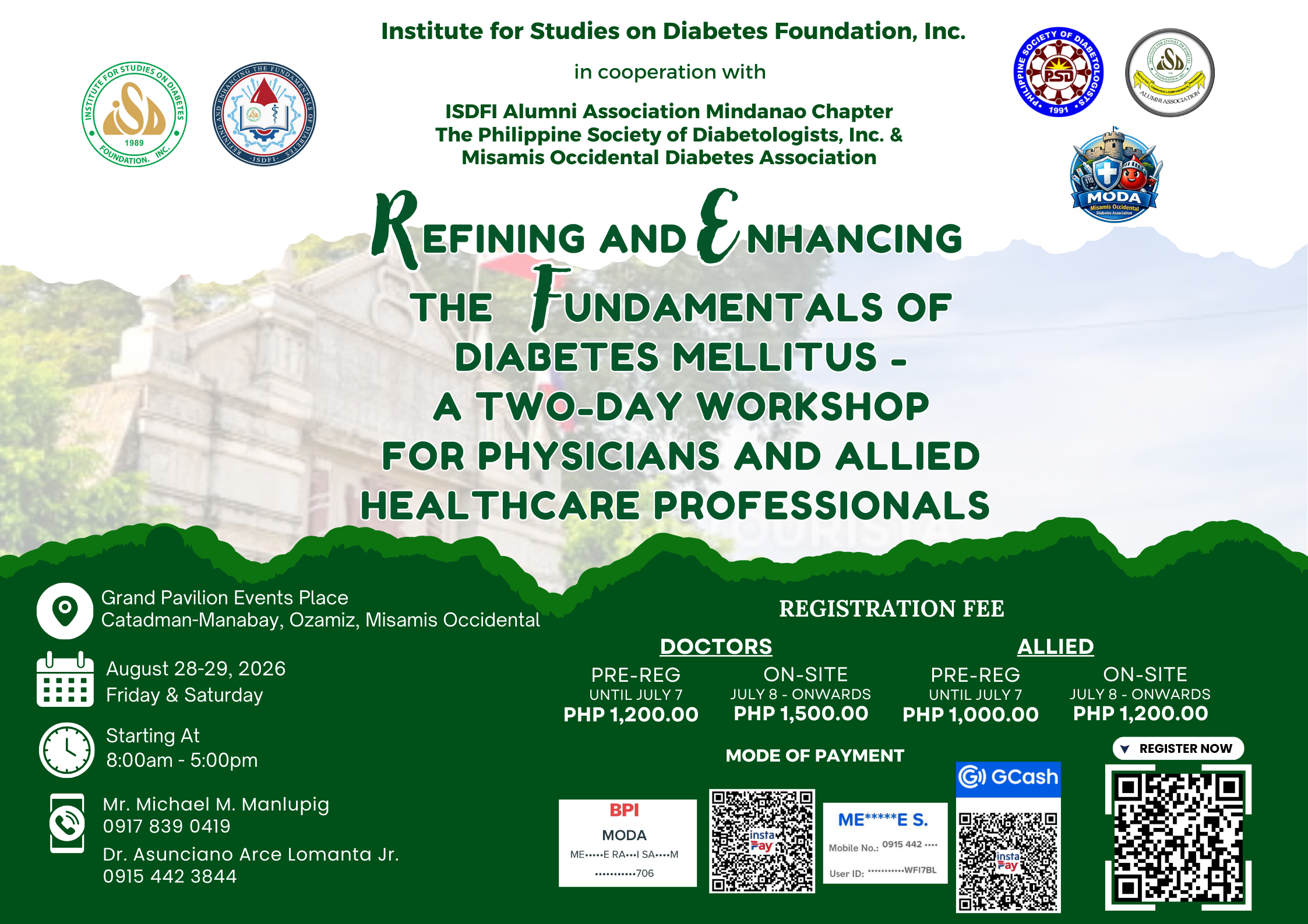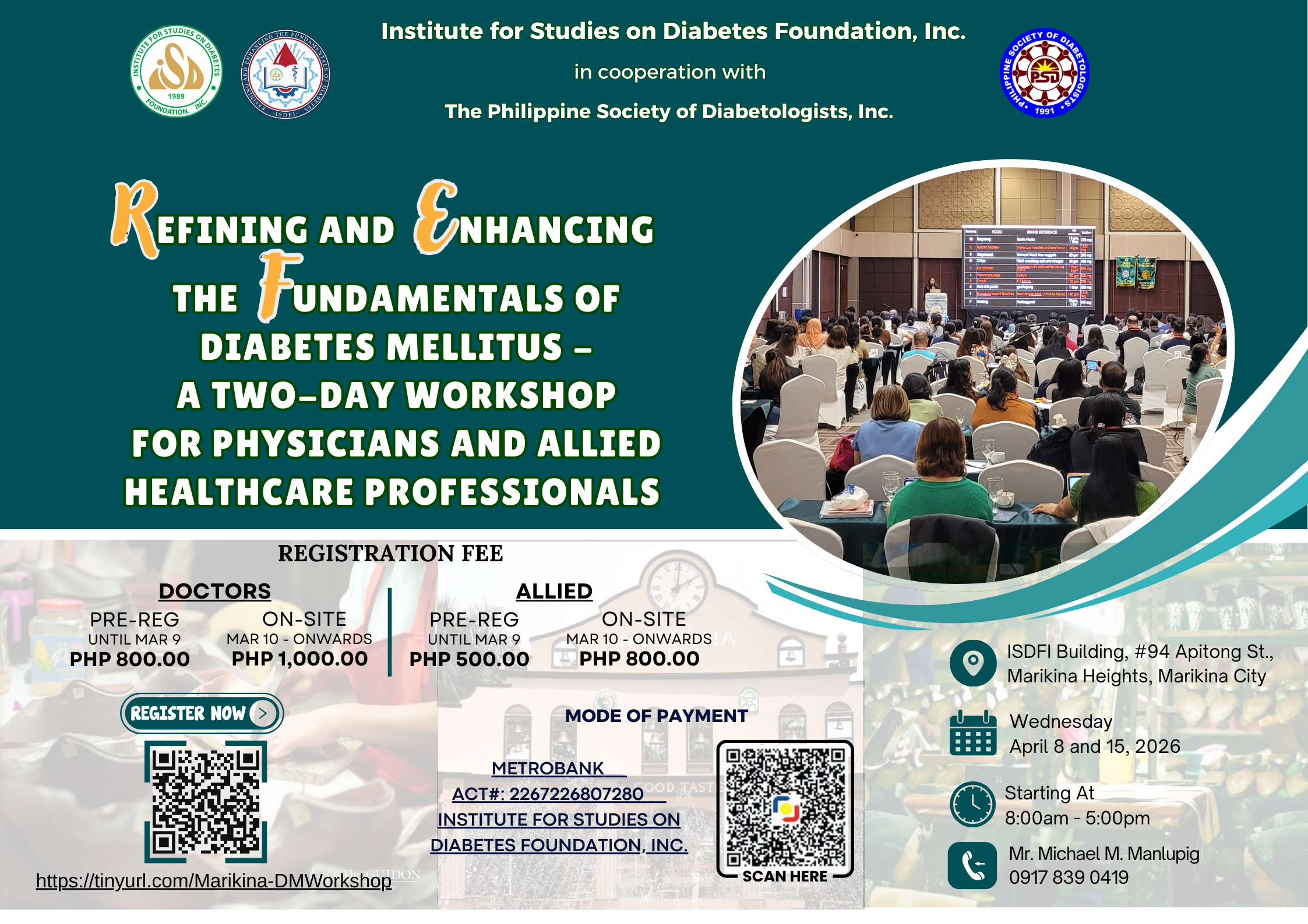 We invite physicians and allied healthcare professionals to join the Two-Day Workshop on Refining and Enhancing the Fundamentals of Diabetes Mellitus.